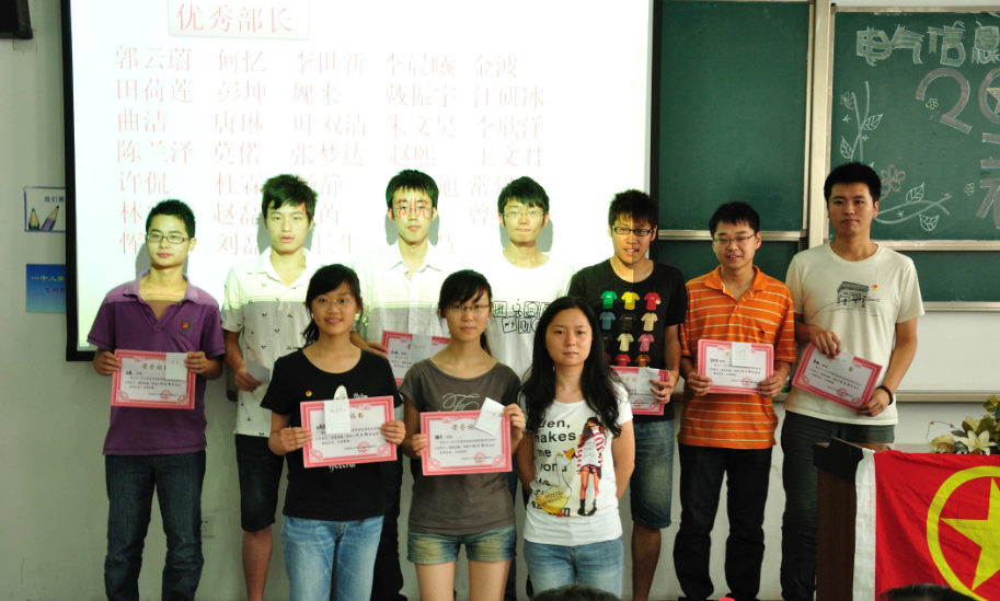 6月12日,电气信息学院分团委学生会2010-2011年五四表彰大会在综C103成功举行。与会嘉宾有电气信息学院党委副书记韩芳,电气信息学院分团委书记戴婷婷,以及电气信息学院分团委学生会09级主席团成员和各部门部长。10级各部门干事和志愿者代表也参加了本次表彰大会。