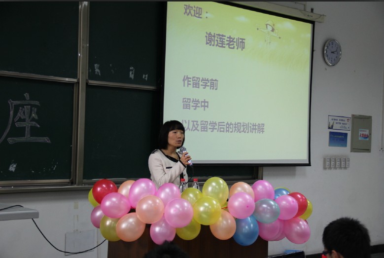 2011年11月6日下午三点整,由四川大学制造学院、电子信息学院、电气信息学院三学院英语协会联合举办的以留学规划为主要内容的讲座江安校区综C105成功举行。本次讲座邀请了出国留学预备学院的谢莲学姐为同学们讲解了出国留学方面的相关问题及注意事项。