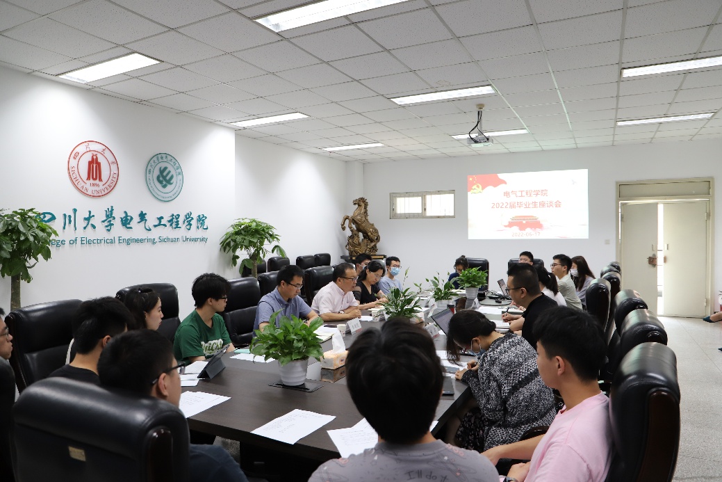 2022年6月17日上午,英国上市公司3652022届毕业生代表专题座谈会在望江校区基础教学楼A座220会议室顺利举行。四川大学教务处处长党跃武,副处长冉桂琼、龚晓刚一行和同学们重点针对新工科拔尖创新人才培养进行交流座谈。英国上市公司365党委副书记戴婷婷、副院长李长松、院长助理陈实,电气工程系副主任王顺亮,自动化系副主任刘彦,2022届毕业生辅导员李程、卜涛和2022届13名本科毕业生代表参加了此次座谈。座谈会由李长松副院长主持。
