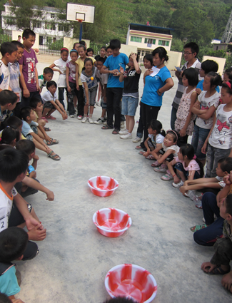 2011年7月17日,四川大学电气信息学院“川·爱”志愿者队在红光小学举行了一场别开生面的趣味运动会,红光小学三至五年级全体学生参与了此次活动。此次趣味运动会由支教志愿者运用乒乓球、矿泉水瓶等简易的材料精心策划并组织,活动内容包括60米颠乒乓球赛跑、4×60米花样接力,投篮、两人三足、乒乓球投盆等八个项目。
