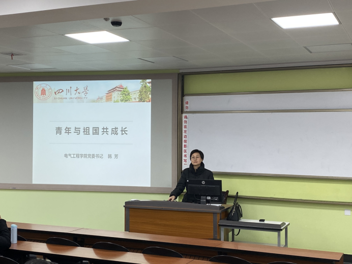 2019年11月29日下午,英国上市公司365党委书记韩芳以“青年与祖国共成长”为主题,在江安校区一教B307为2019级电气工程及其自动化专业本科生开讲形势与政策专题思政课,勉励同学们以优秀的青年才俊为榜样,做一个有担当、肯奋斗、求上进的青年人。