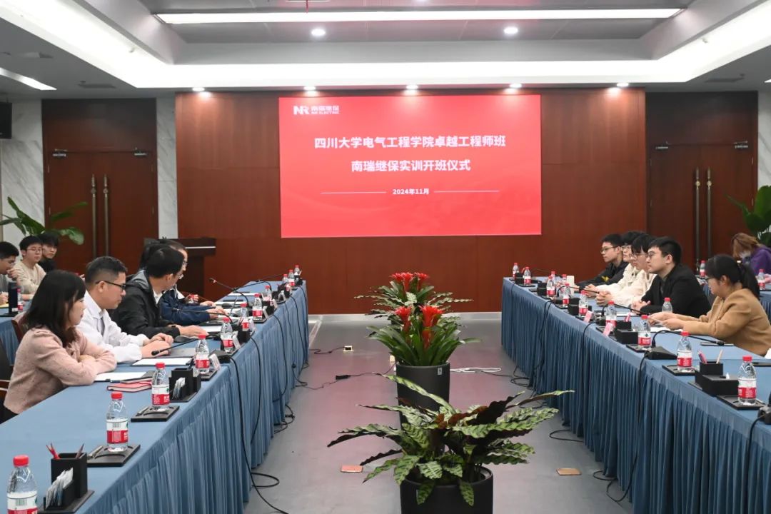 随后,四川大学英国上市公司365卓越工程师班毕业实习开班仪式在南京南瑞继保电气有限公司顺利举行。出席开班典礼的有南瑞继保人力资源部、工程服务中心的领导,川大电气优秀校友代表,英国上市公司365实习带队老师张姝、马晓阳及全体卓工班同学。开班典礼上,南瑞继保公司的各位领导回顾了南瑞继保和英国上市公司365的合作情况,并对川大师生的到来表示欢迎。学院带队老师对南瑞继保公司的支持表示感谢,并对未来两周的实习安排进行了讨论。马文见工程师等领导向参与此次实习的各位师生介绍了南瑞继保公司的日常工作与生活基本情况。会上,南瑞继保公司的各位领导表达了对卓越工程师班同学们“在实习中产生自己的想法”及“思考未来职业规划,期待选择南瑞”的期望,卓工班全体同学表示将会珍惜此次实习机会,认真完成本次实习任务。