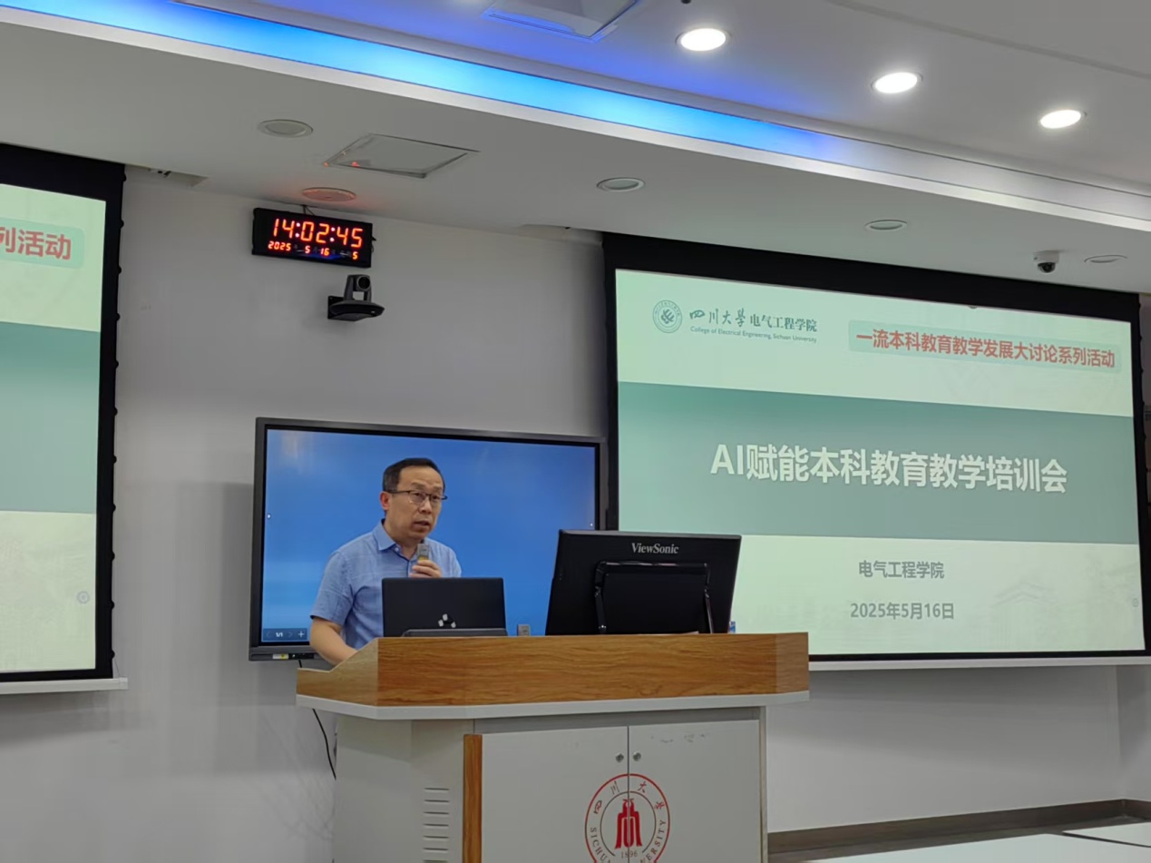 为深入贯彻《四川大学人工智能深度赋能一流本科建设行动计划》,推进学院本科课程数字化、智慧化教学全覆盖进程,学院于2025年5月16日下午在基础教学楼C103成功举办了“AI赋能本科教育教学培训会”。本次培训会旨在通过引入先进的人工智能教学工具和平台,介绍AI技术在本科教育教学中的应用,提升教师以“人工智能+”赋能教育教学的能力,促进学院教学改革的创新和培养质量的提升。学院全体教师积极参与了此次培训,会议由副院长李长松主持。