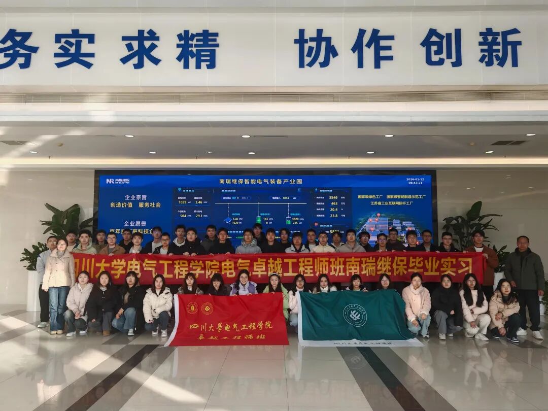 2026年1月12日,由学院老师张姝、黄勇带队,2022级英国上市公司365电气卓越工程师班的45名同学来到南瑞继保电气有限公司开展毕业实习。
