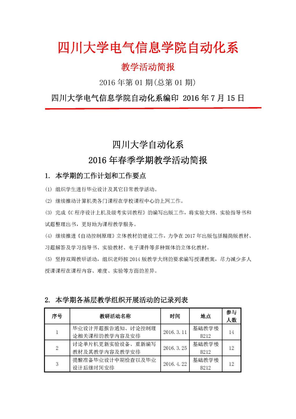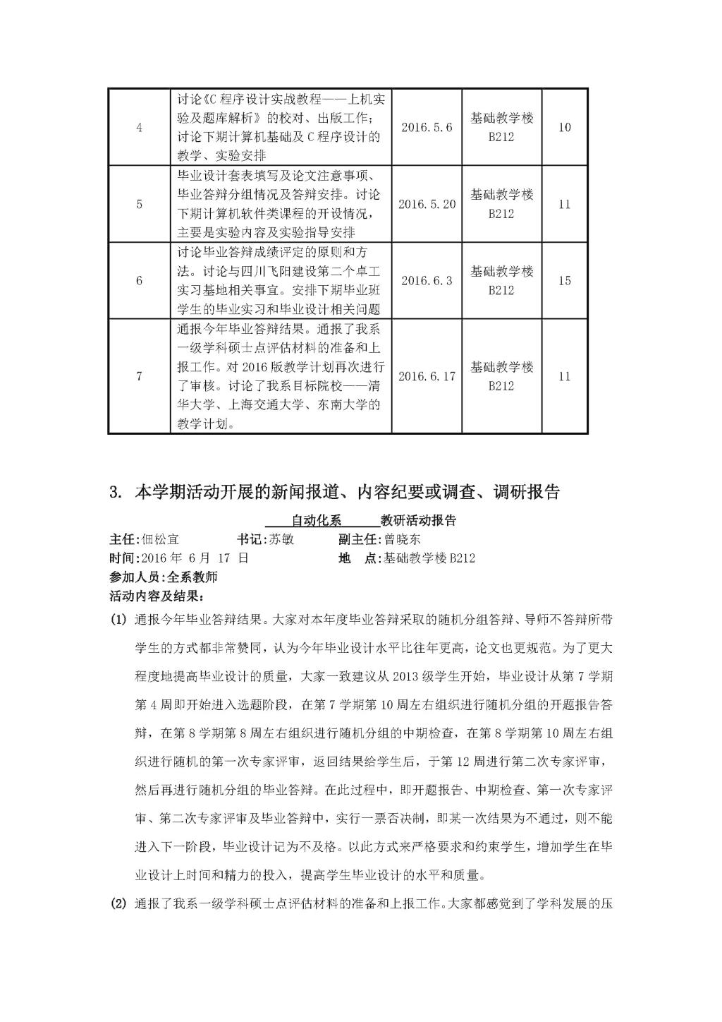 自动化2016年(春季学期)教学活动简报