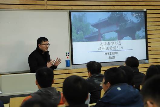 分管副院长李长松首先做工作会开场介绍,提出本次会议主旨。随后,学院特邀化工学院周加贝老师和建环学院卢红雁老师分别做了主题为“改造教学形态,提升课堂吸引力”和“四川大学的一门跨学科项目制课程——可持续城市系统”的本科教学改革创新经验报告。两位老师分享了多年的课堂教学改革经验和项目制课程建设心得,并和参会教师们进行了互动交流。接着,李长松进行2019年度本科教学工作布置,强调当前国家层面对本科教育的重视,介绍了学校和学院当前的发展形势和要求,规划了2019年的工作重点并提出了近期工作的具体要求。最后,院长肖先勇进行了会议总结,强调了学院“以办最好本科为宗旨,以学生发展和教师发展为中心”的教学理念,同时表达了对全院教师全心全意投入本科人才培养的恳切希望。