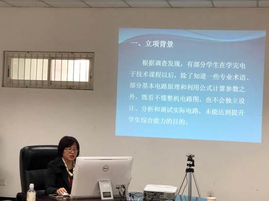首先李长松副院长介绍了本次交流会的目的和意义,随后各项目负责人一一通过认真准备的PPT,详细介绍了项目的研究方案、具体措施、对教学过程的改进、成效,进一步提升项目研究的做法等。例如,马雪莲老师详细介绍了项目组在针对理论严重滞后技术发展、实验方式单一、沟通渠道少等采取了一系列措施,如从广度和深度提升实验项目、采用口袋实验室、建立QQ群或微信群及时解答学生疑问等。通过一学年的实施,发现学生的实验成绩有明显提高;陈彬兵老师介绍了数电课程建了行走的实验室,理论教学上利用SPOC平台、采用“雨课堂”、“翻转课堂”的教学手段;向月老师介绍了通过改革课堂内教学形式(第二课堂资料展示、互动交流、动态更新、提升、充实课程方案等)、加入多种课堂外教学形式、带领学生走出学校等,取得了一系列成果如发表教改论文、制作教学软件、建立网站等。