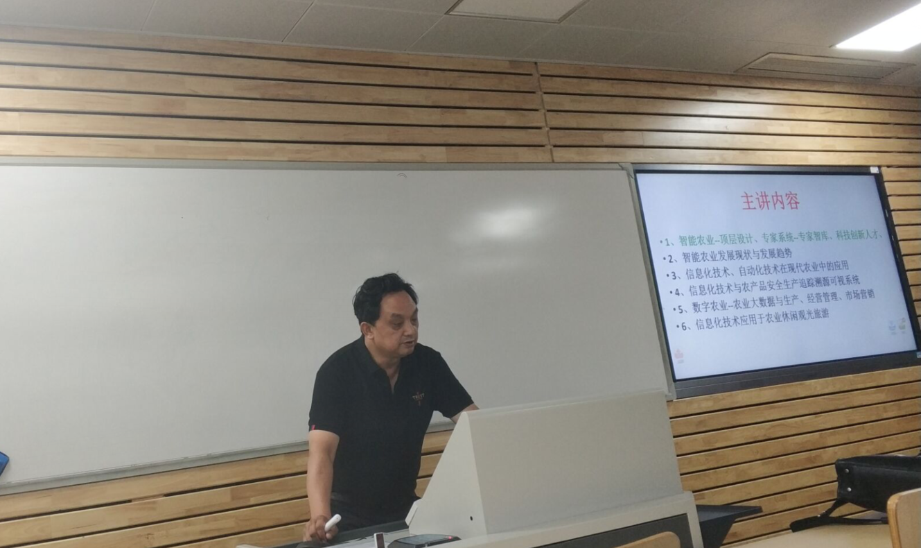 董顺文老师从自己对智能农业的理解入手,向同学们理论结合实际地生动讲解了智能农业发展现状与发展趋势、信息化技术、自动化技术在现代农业中的应用、信息化技术与农产品安全生产追踪溯源可视系统,以及农业大数据与生产、经营管理、市场营销等内容。董顺文老师授课亲切、详尽,讲座内容给师生们留下了深刻的印象,引发了师生们对智能智慧农业应用的热烈讨论,激起了学生们的强烈兴趣。