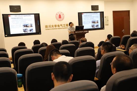 随后,学院4个基层单位领导分别代表各自单位做了19年上半年工作报告。电气工程系主任王渝红和自动化系主任佃松宜分别就两系对标10大行动计划的落实与执行情况作了总结汇报,并对未来的工作提出了计划和展望。各系在行动计划的指引下,锐意进取,经过不断努力,取得了丰硕的成果。同时,就目前工作中面临的各项困难,各系也认真分析,积极探索,依托学校和学院的支持,努力开创工作新局面,切实提升本科教育水平。