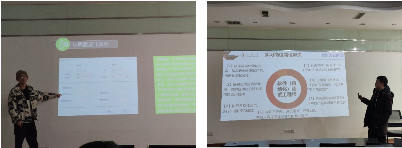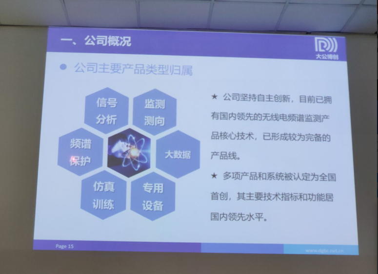 12月23日实习正式开始,成都大公博创信息技术有限公司产品研发部鲜果副经理首先对同学们进行了无线电相关知识的培训,并向同学们分享了他的职场经验。通过培训,同学们了解了无线电领域的相关知识,以及为什么要设计产品来进行无线电管控,培训后同学们通过阅读公司70周年国庆阅兵中所进行的无线电监测管控系列报道,第一次深刻体会了无线电“空中交警”的重要性。
