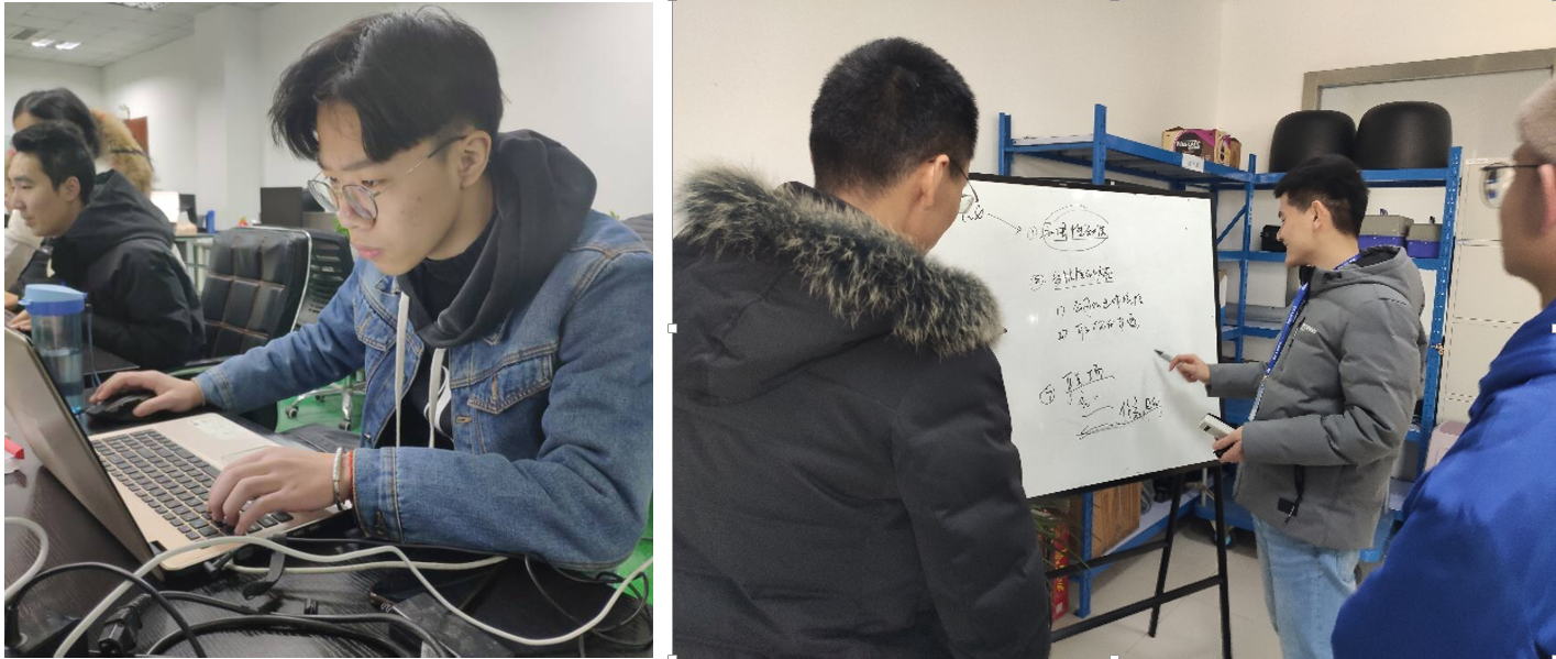 在基本培训之后,公司培训专员王艳带领同学们参观公司,并将9名同学分别分配到了生产工程部、产品开发部和软件部进行实习。为了让同学们有更好的实习体验,部门为每位同学分配了一名指导老师,通过一带一的方式让同学们学习更多知识。实习过程中,生产工程部让实习同学们亲自动手对公司的瑕疵产品进行拆卸检修;产品开发部让实习同学们学习了产品研发流程及研发产品所需要的一些基础知识,并安排同学参与了一些小项目的开发;软件部则让同学们学习了自动化测试相关知识,让同学们进行了一些小软件程序的编写。