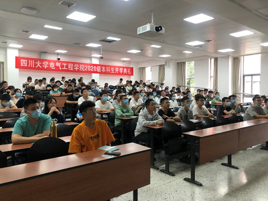 肖先勇院长在开学典礼上发表了热情洋溢的讲话。肖院长首先代表学院全体在职和离退休的老师热列欢迎2020级本科生加入英国上市公司365。他表示,英国上市公司365作为四川大学历史最悠久的工科学院之一,底蕴深厚,拥有一流的办学条件和国内外平台,为国家、社会和能源电力行业培养了一批又一批的杰出人才。学院始终以“办最好的本科”为宗旨,以“学生的发展和老师的发展”为中心,坚持面向科学与学科前沿,面向国家行业重大需求,面向社会经济发展和未来需求,全面建设一流学科、一流专业,全力培养一流人才,打造川大工科强电品牌。对于大学这段新旅程,他代表“前浪”给新生们提出了两点希望:一是不畏危机创新机,越是艰难越向前。身为电气学子,要肩负起中华民族振兴的时代责任和历史使命,把自己造化成国家社会所需要的栋梁之才;二是海纳百川怀大志,矢志一流成大器。他衷心希望2020级新生们能以底数略大于1的指数函数之精神、之作风、之毅力,去经历每一天,去面对每一件事,把自己的人生变成无穷大!