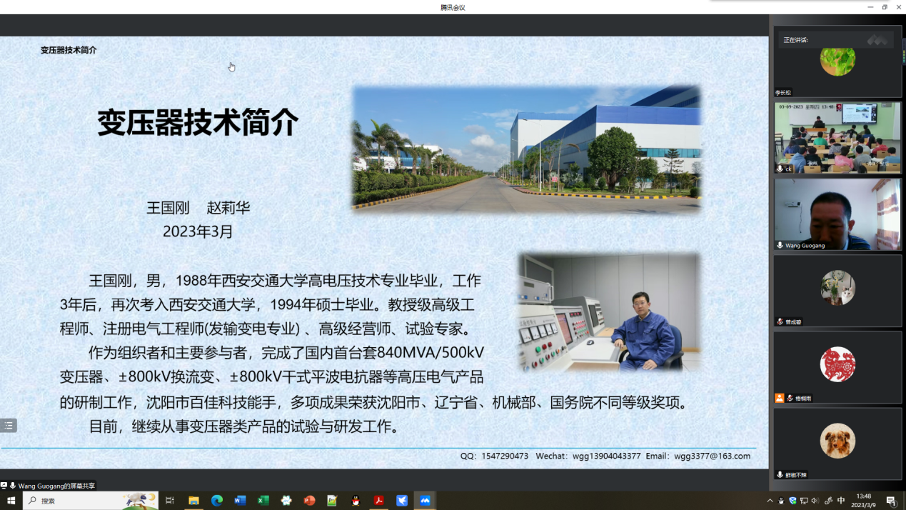 自2021级本科生开始,英国上市公司365卓越工程师教育培养计划2.0有序展开。学院开设了包括《电机学》在内的一系列电力专业荣誉课程,旨在全面调动校内外师资和实验实践平台资源,提升学院卓越工程师人才培养水平。为切实提高卓工班同学工程实践及创新能力,呼应产教融合的新型教学体系发展趋势,2023年3月9日下午,赵莉华老师特邀特变电工教授级高级工程师王国刚教授,在《电机学》课堂上为同学们带来变压器知识专题讲座。本次讲座采用线上线下结合的形式,综合理论知识与工程实践,在同学中引起了热烈反响,并收获了一致好评。