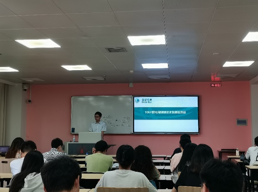 讲座内容主要分为三部分,第一部分对配电网的基本概念及其标准化网架结构进行了概括性讲解,王工指出,电力公司立足构建以新能源为主体,通过配电网的高质量发展实现向新型电力系统转型,服务“碳达峰、碳中和”大局;第二部分主要讨论了配电网规划设计编制的流程与主要内容,涉及到四川电力调度、电力市场和安稳防控措施之间的关系,使得同学们对所学专业课程在实践上有了更深刻的理解;最后一部分讨论了标准化示范工程案例,王工以图片和视频的形式生动展现了实际配电网可能存在的问题,以及配电网规划的考虑因素。