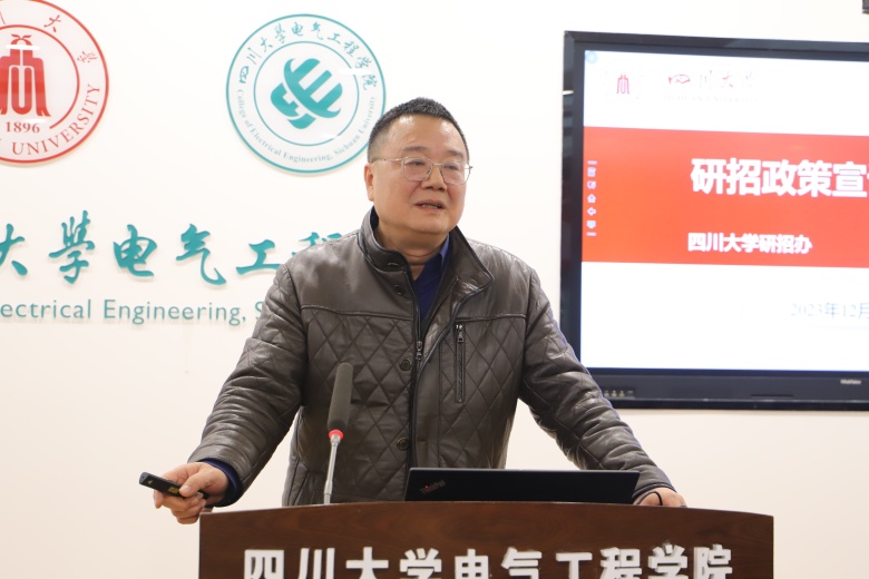 研究生院招生办公室主任刘猛结合我院2023年博硕士研究生录取情况简要介绍了招生工作现状,先后就招生政策、结构优化、导师动态上岗等方面的政策要求作了系统梳理和解读。