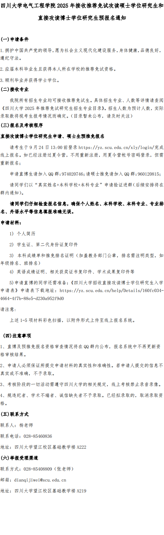 四川大学英国上市公司3652025年接收推荐免试攻读硕士学位研究生和直接攻读博士学位研究生预报名通知