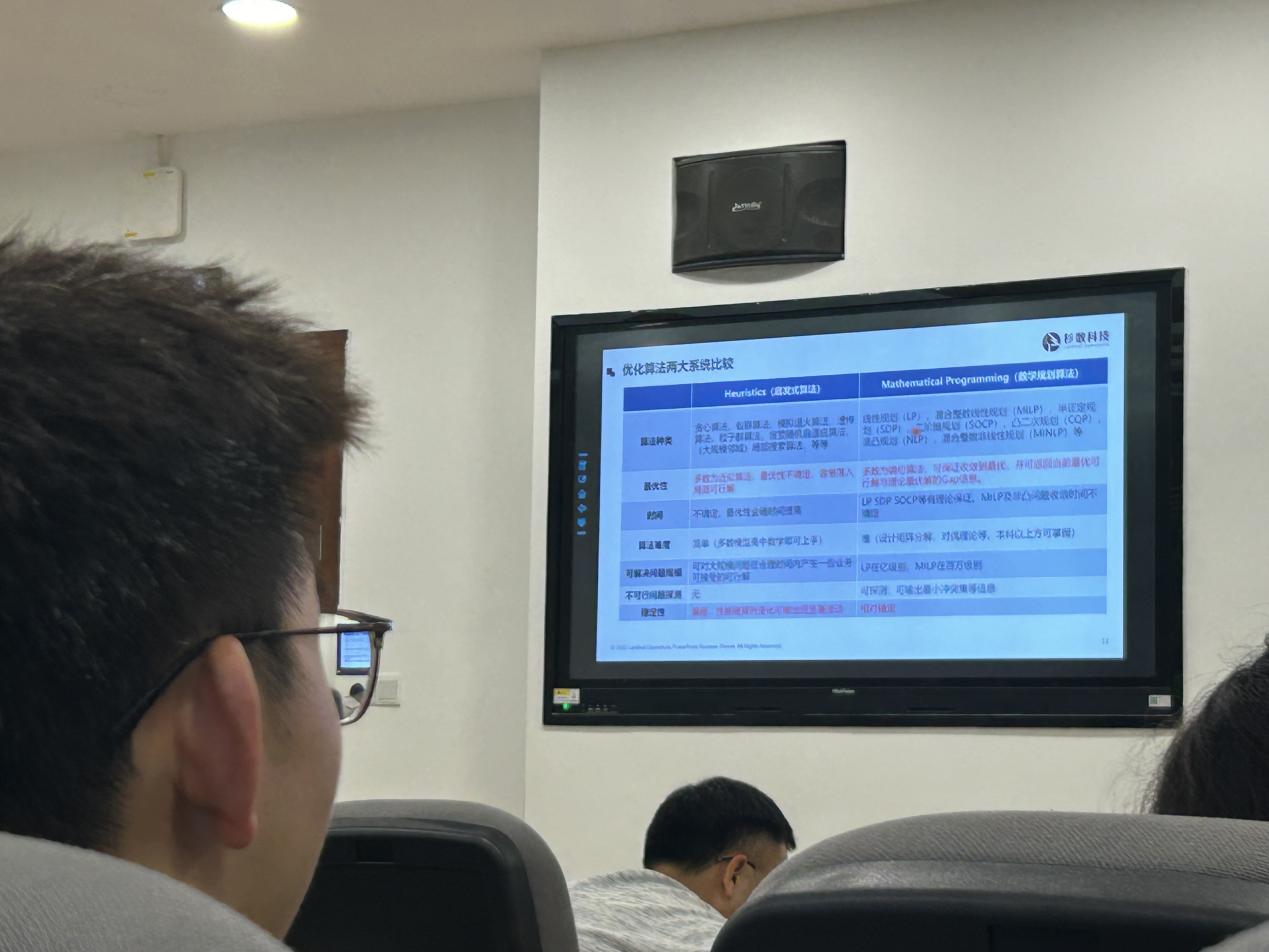 讲座上,赵亮总监深入浅出地介绍了国产数学规划求解器COPT最新研发进展和性能表现以及运筹优化建模与求解技术在新型电力系统中的落地应用,并指出求解器适用于军事,航天,能源,交通等一系列场景。讲座过程中,赵总监向同学们展示了数学规划模型的实例,COPT的求解能力以及COPT的计算流程(线性规划,混合整数规划,二次锥规划,半定规划),剖析了当前发展国产数学规划求解器面临的主要挑战,为后续COPT的规划发展和研究方向提供了有利参考。