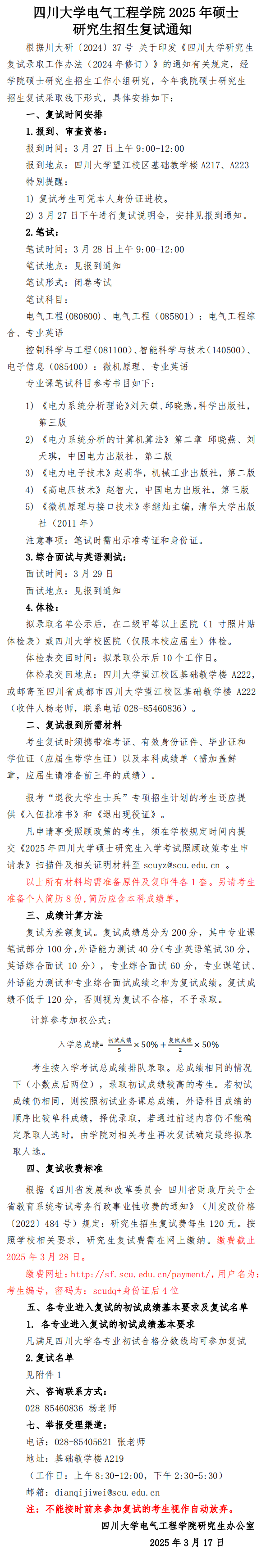 四川大学英国上市公司3652025年硕士研究生招生复试通知