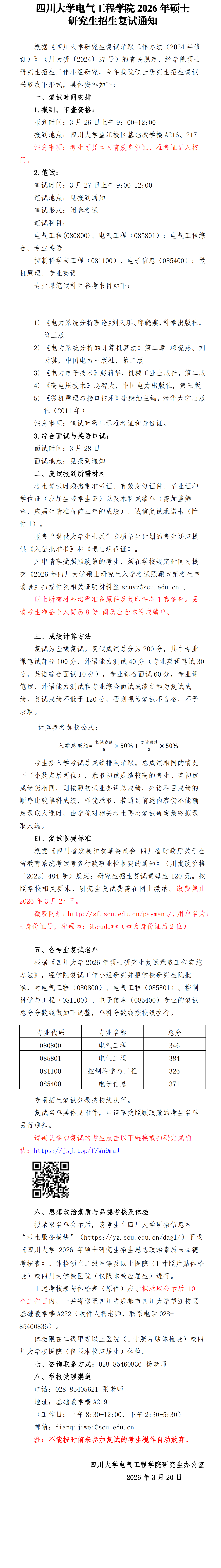 四川大学英国上市公司3652026年硕士研究生招生复试通知