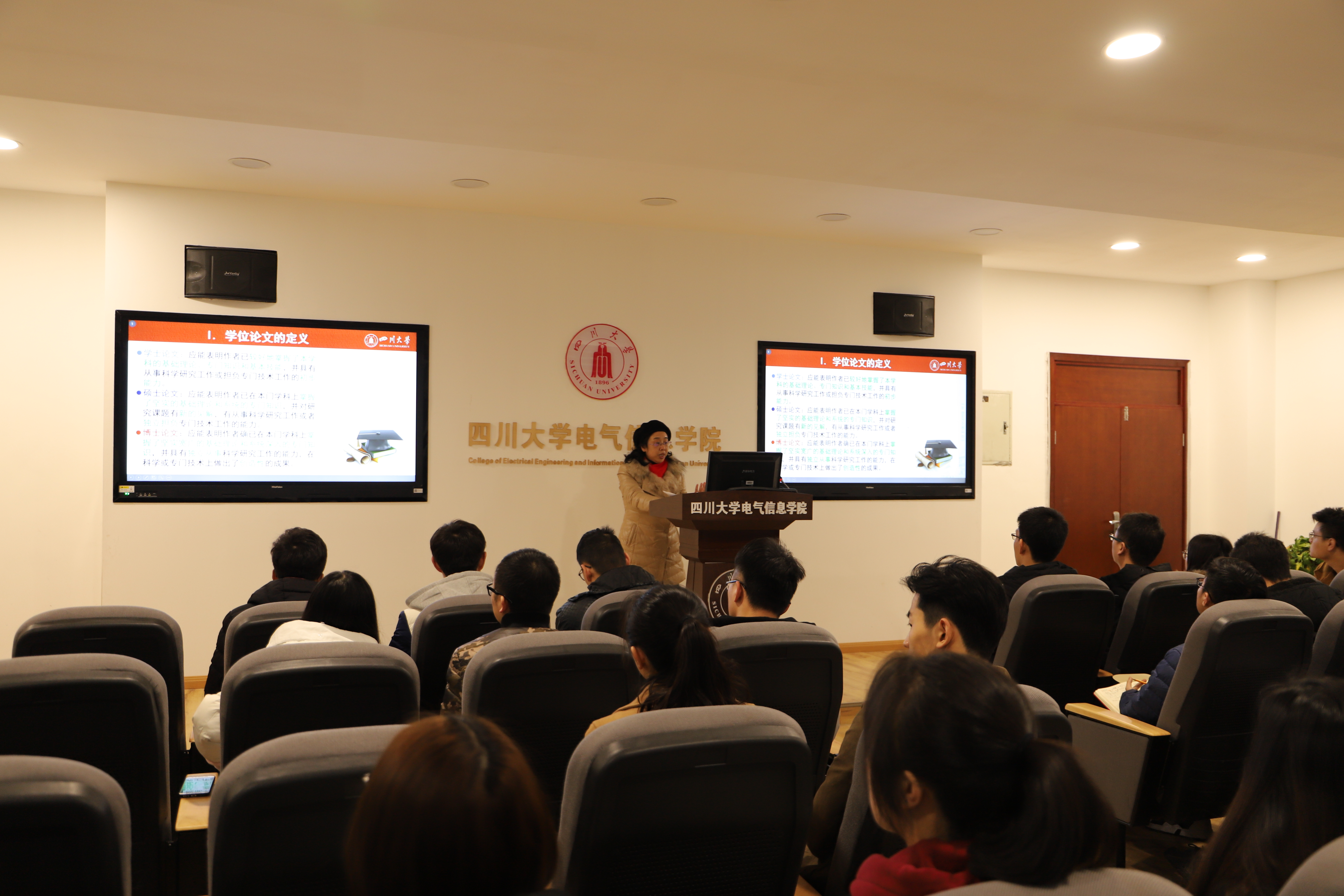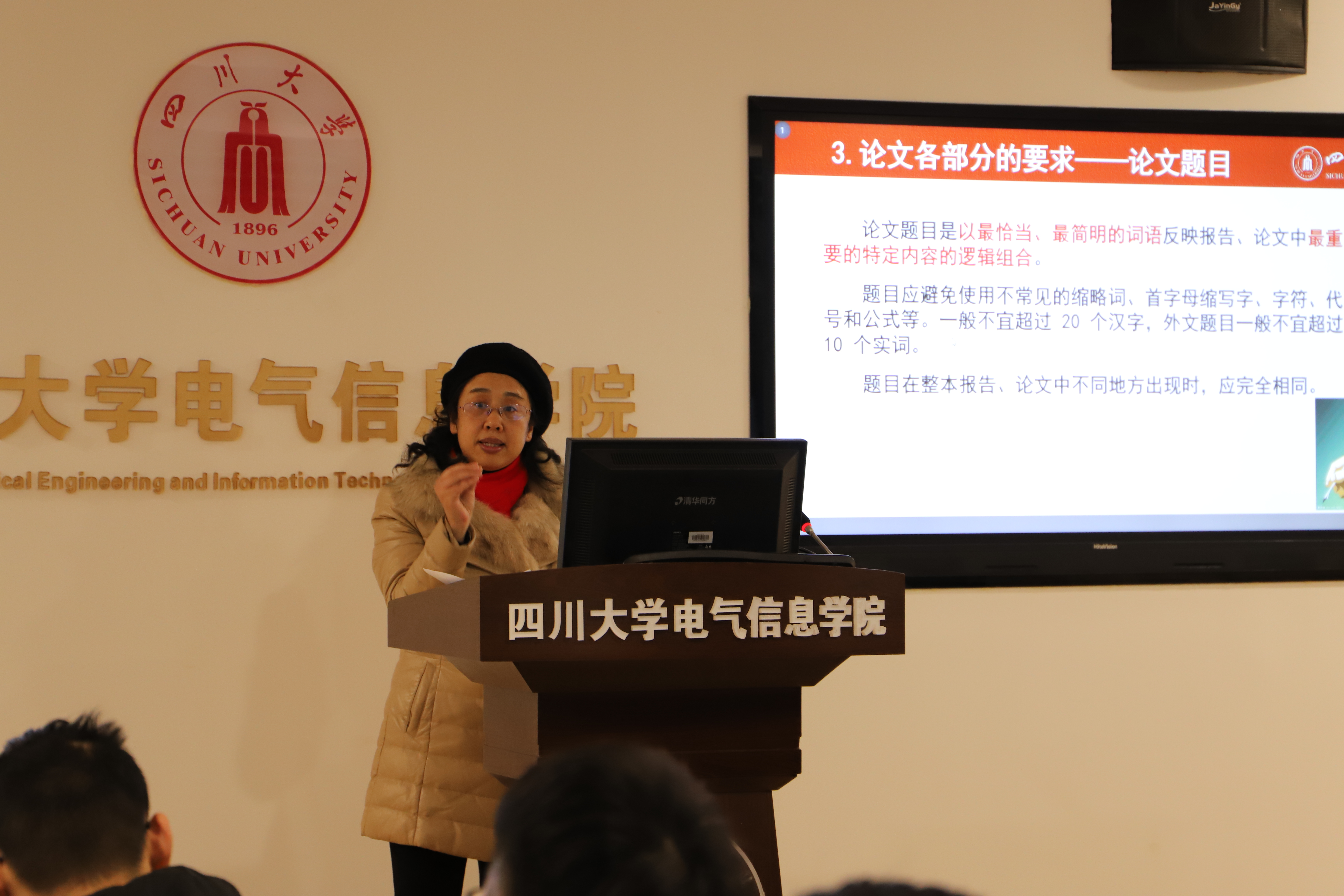 为进一步规范研究生学位论文写作,培养研究生撰写论文的严谨态度,2018年12月25日下午在望江基础教学楼B206,电气工程系赵莉华副教授为学院硕士研究生开展了学位论文写作规范讲座。本次讲座中,赵老师针对在以往指导研究生学位论文及学术论文写作中发现的问题,全面详尽地讲解了研究生论文写作的规范和方法,并通过许多实例为研究生提供了许多建议和技巧。部分大四年级的同学也参加了此次讲座。