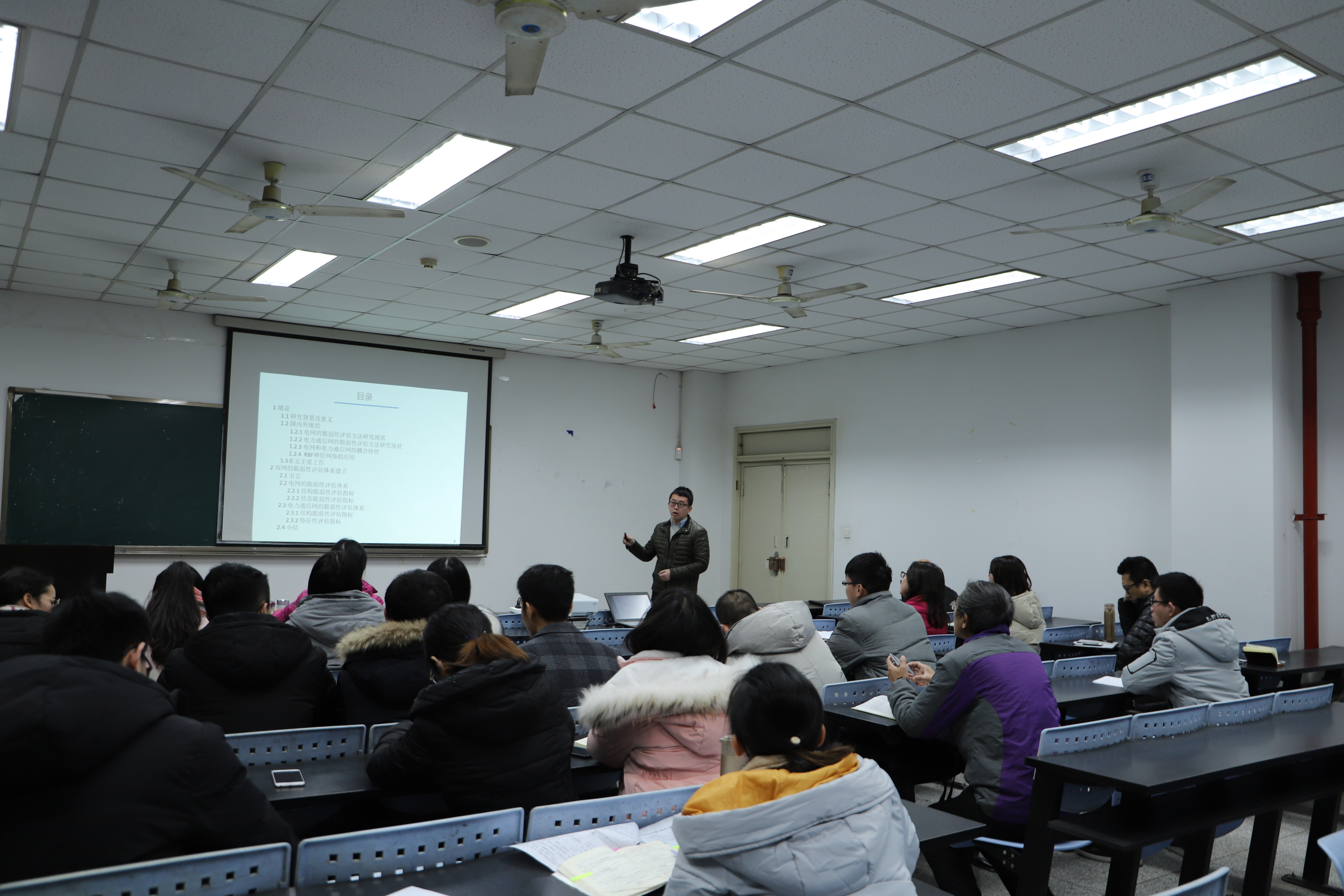 2019年1月2日,我院电力系统稳定与控制课题组在刘天琪教授主持下,在望江校区基础教学楼B104,举行了三年级硕士研究生毕业论文提纲汇报会。会议听取了研三同学毕业论文的提纲、主要研究内容,审查了已发表文章及参研项目。课题组王渝红,张英敏、陈实、王顺亮、何川、马俊鹏、印月、王东平等各位老师参加了会议,参会学生包括研三同学及其他年级硕博士研究生。