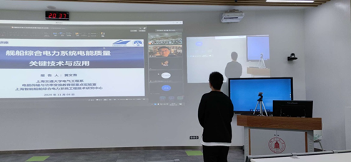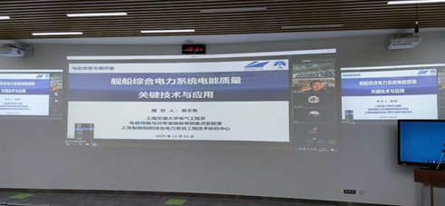 黄文焘教授首先介绍了船舰电力系统的特点、特殊性和发展历史以及舰船推动系统发展对于电力系统的影响。针对电能质量问题,黄教授分享了船舰电能质量扰动源、大功率负载突变、非线性设备电能质量干扰等方面的研究,介绍了三种电能质量的划分标准、电能质量指标限值和几类电能质量问题,并针对性地提出了软硬件相结合的解决方法;通过对比船用整流设备各项指标,分析得出船舰在不同需求部分需要应用不同的整流技术,并用亲自参与设计的“东方红3”综合科考船的案例介绍了船舰电力系统电能质量优化问题的研究。黄教授还为同学们简要介绍了船舰综合电力系统未来的发展方向,并提出“兴船报国,创新超越”,以此激励同学们努力学习、不断进步。