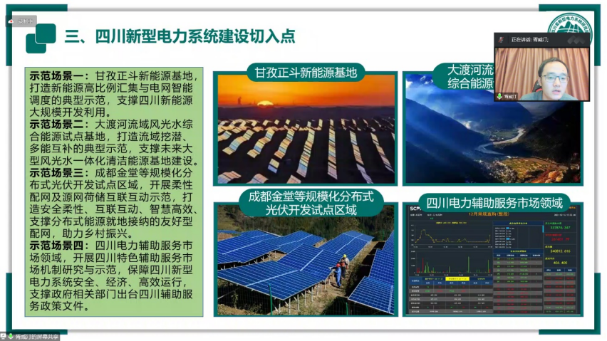 9月18日下午,2022级电气工程专硕同学迎来了第一次《技术前沿与专业实践》课程。本次课程由电气工程系向月副教授主持,邀请了四川新型电力系统研究院胥威汀主任作“四川新型电力系统研究先期布局与路径探索”专题讲授。胥威汀主任博士毕业于四川大学电力系统及其自动化专业,曾就职于电力设计院、国网能源院和省经研院,长期从事能源战略和电力规划工作。本次课程内容从新型电力系统的形式与背景、特征与内涵以及四川省新型电力系统建设切入点三方面展开。