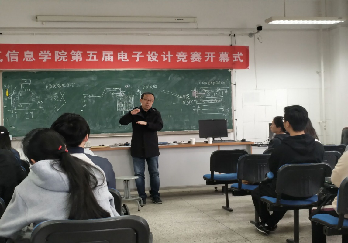 2019年3月31日下午,由四川大学电气信息学院主办,学生科技协会乐电社与AC社协办的“电气信息学院第五届电子设计竞赛开幕式”于江安第二基础实验教学楼A517顺利举办,学院教学副院长李长松和院党委副书记戴婷婷出席了开幕式。开幕式由教导员李小根老师主持,全体参赛同学参加了开幕式。