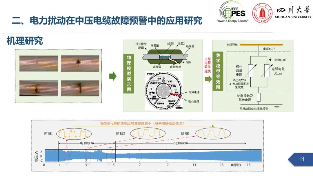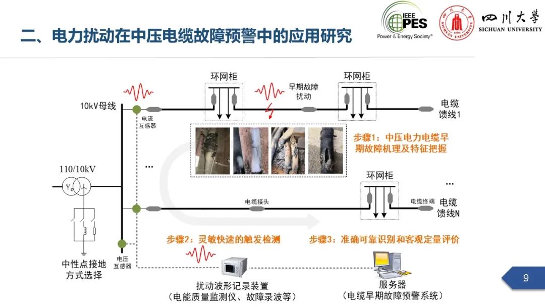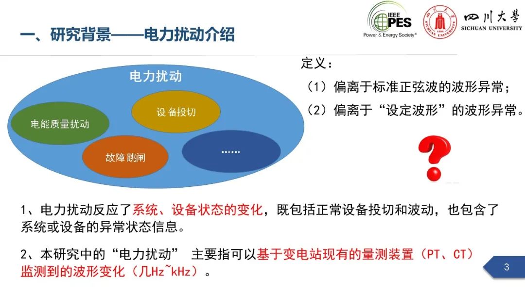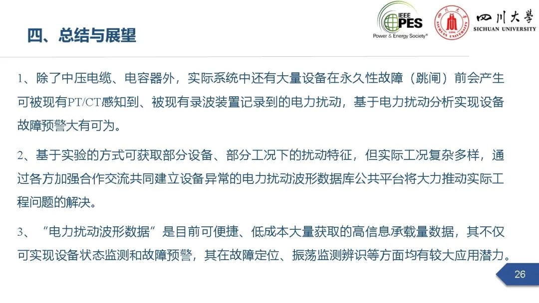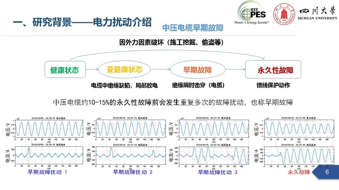 会上,四川大学英国上市公司365副研究员张文海作了题为“电力扰动分析在设备故障预警中的应用初探”的主旨报告,指出利用站端电压/电流互感器直接测量获取的电力扰动波形数据可以有效地感知设备和系统状态,并在此基础上针对中压电缆和电力电容器两类设备在永久性故障前期可能出现的扰动进行了探索性研究,提出了基于电力扰动监测的中压电缆和电力电容器故障预警方案。经本人授权,与大家分享报告PPT。