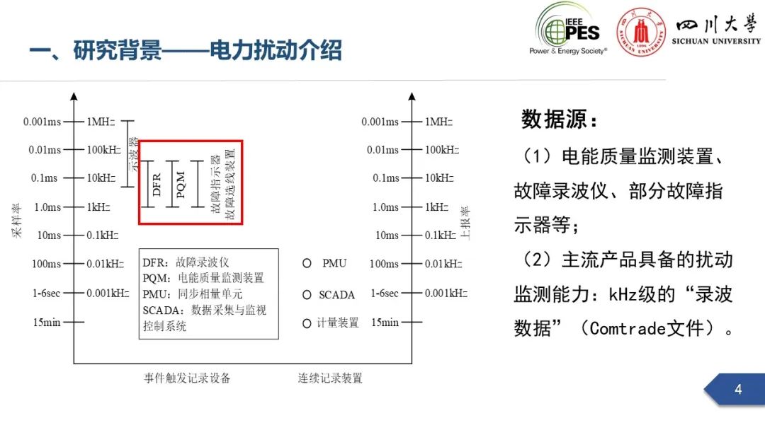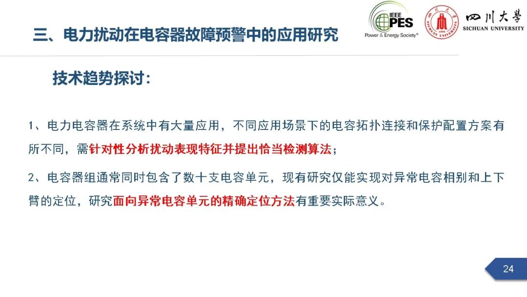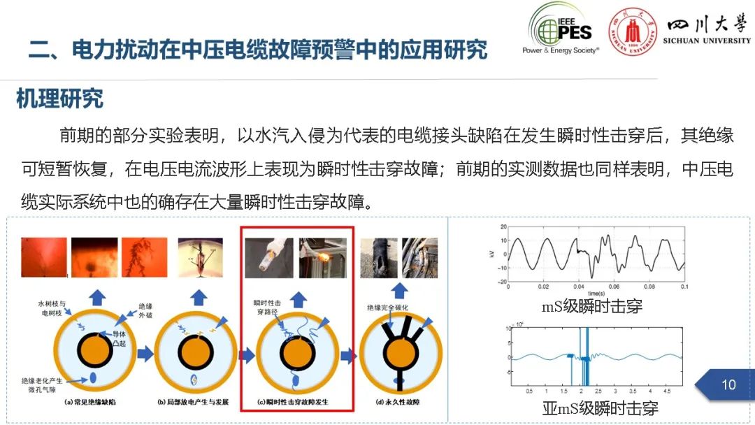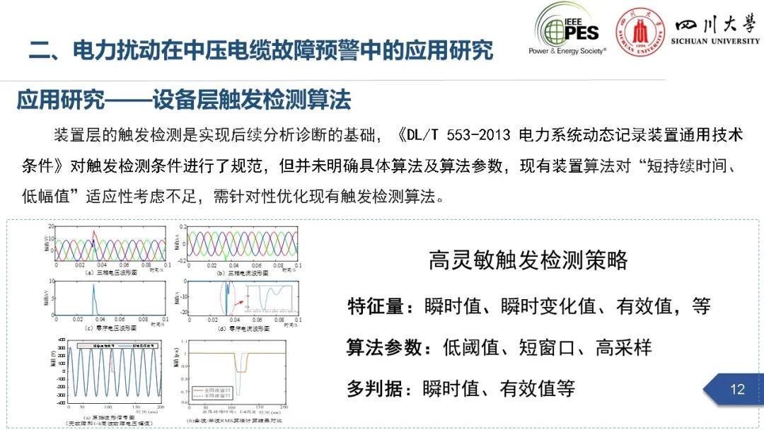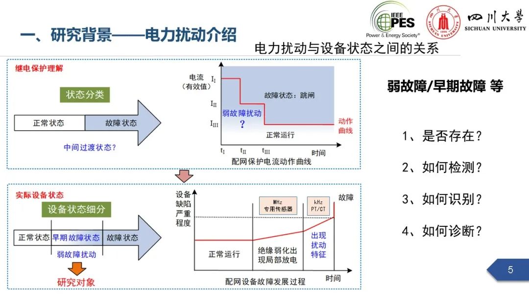 会上,四川大学英国上市公司365副研究员张文海作了题为“电力扰动分析在设备故障预警中的应用初探”的主旨报告,指出利用站端电压/电流互感器直接测量获取的电力扰动波形数据可以有效地感知设备和系统状态,并在此基础上针对中压电缆和电力电容器两类设备在永久性故障前期可能出现的扰动进行了探索性研究,提出了基于电力扰动监测的中压电缆和电力电容器故障预警方案。经本人授权,与大家分享报告PPT。