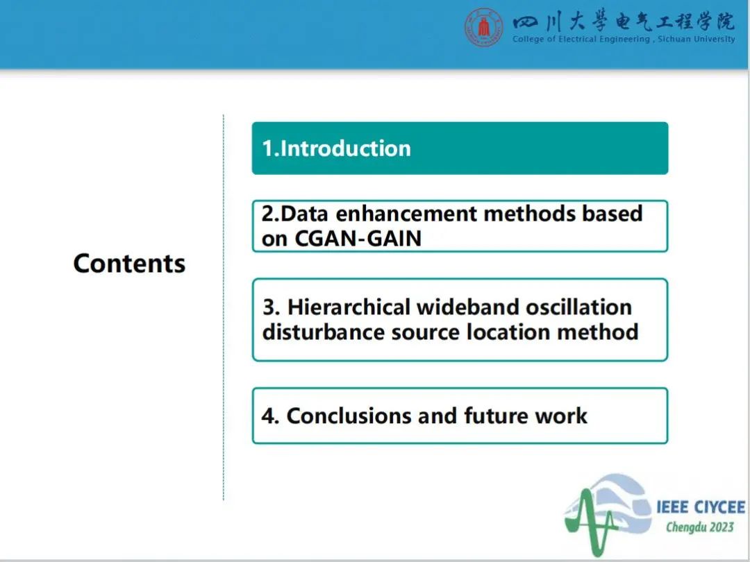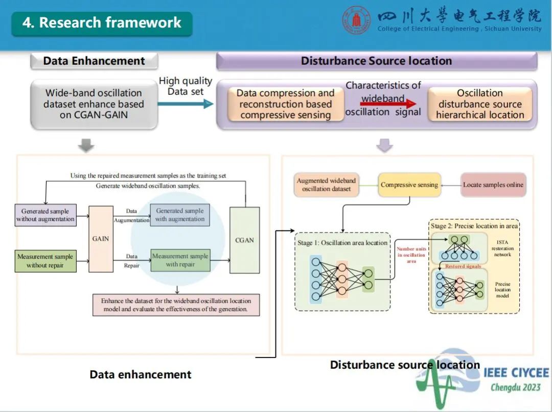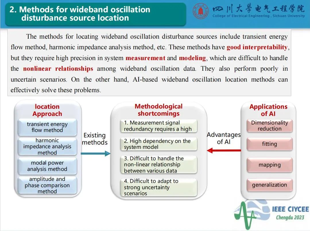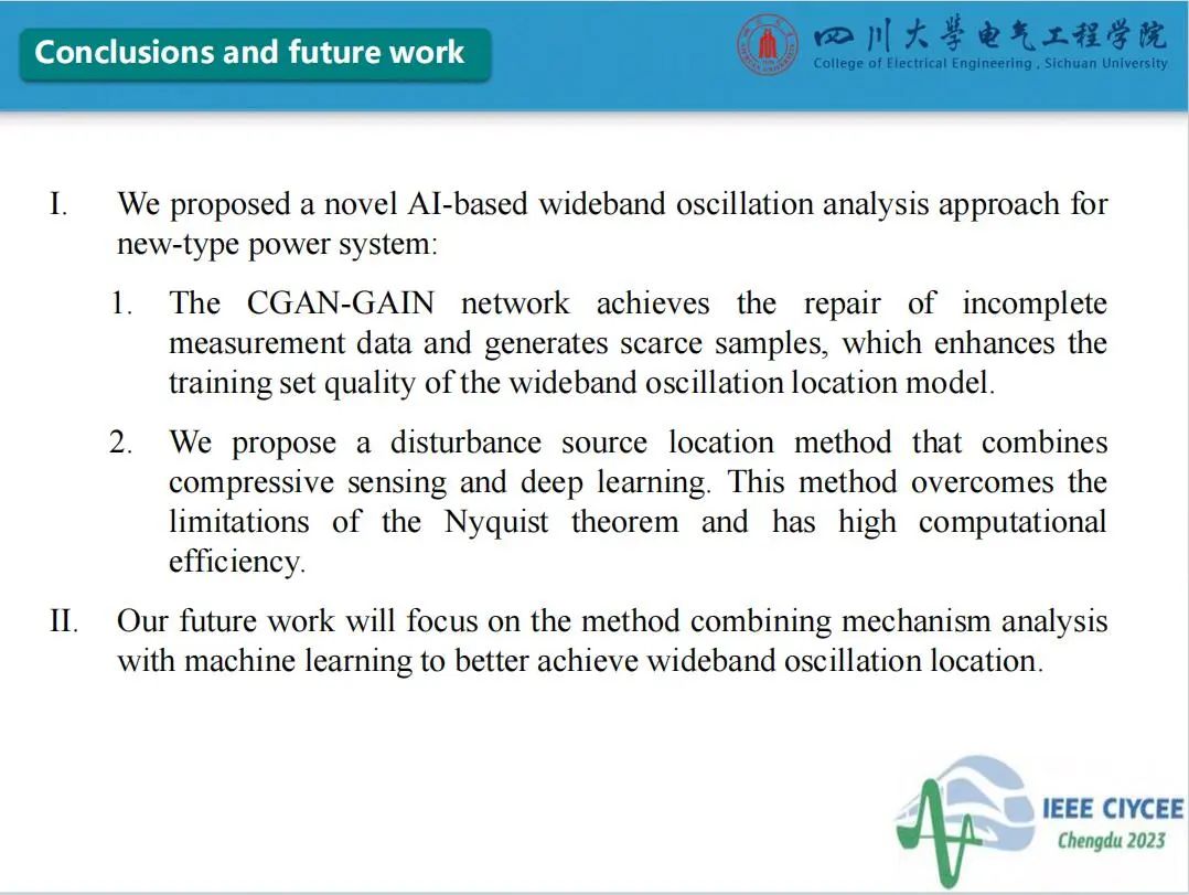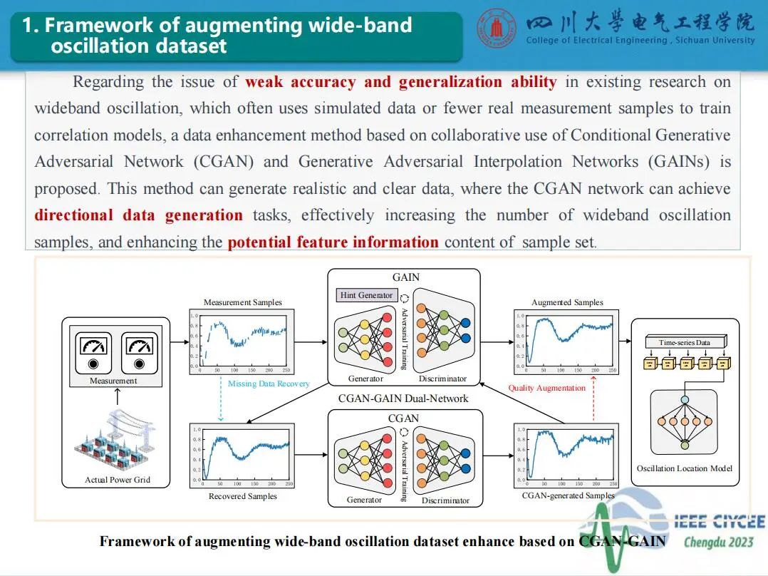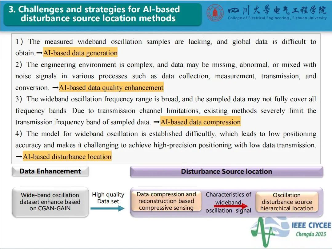 会上,四川大学英国上市公司365特聘副研究员郑宗生作了题为“电力系统宽频振荡扰动源定位智能增强技术”的主旨报告,介绍了目前电力系统宽频振荡扰动源定位面临的问题及人工智能技术应用于振荡源定位的挑战,分享了团队在基于条件生成对抗网络和生成对抗插补网络的数据智能增强方法和基于压缩感知与软阈值迭代算法的电力系统宽频振荡扰动源分级定位方法的研究工作。经本人授权,与大家分享报告PPT。