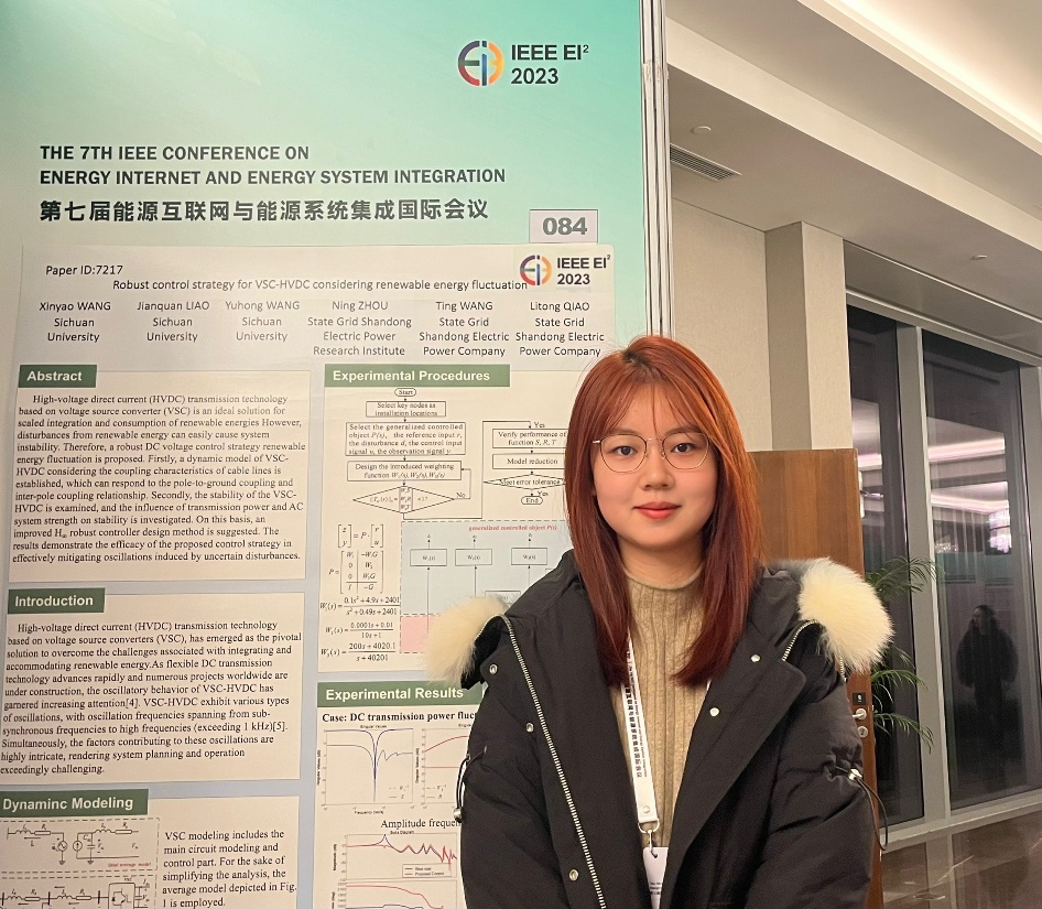 博士研究生王馨瑶发表会议论文《Robust Control Strategy for VSC-HVDC Considering Renewable Energy Fluctuation》介绍了考虑新能源波动特性的直流电网稳定特性与振荡抑制策略方面的研究成果并进行了海报展示;博士研究生周旭发表会议论文《Wide-band Oscillation Disturbance Source Location Based on Compressed Sensing and CNN-LSTM》介绍了响应驱动下融合压缩感知与人工智能的宽频振荡扰动源分层定位研究成果并进行了海报展示。