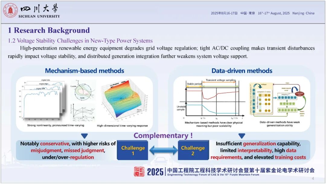 近日,中国工程院工程科技学术研讨会暨第十届紫金论电学术研讨会在南京召开。本次会议的主题是“新能源高质量发展支撑新型能源体系构建”。在“防范新能源高占比电力系统大停电的基础问题与关键技术”分论坛上,四川大学王渝红教授作了题为“机理-数据融合的新型电力系统暂态电压稳定分析”的报告。小编征得专家同意,与您分享精彩报告,欢迎品读!