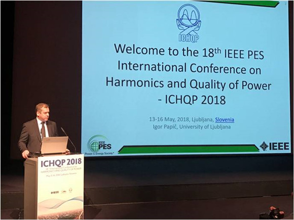 2018年5月13-16日,第18届IEEE电能质量及谐波会议(ICHQP2018,18th International Conference on Harmonics and Quality of Power)在斯洛文尼亚首都的卢布尔雅那大学召开。四川大学电气信息学院肖先勇教授、汪颖副教授、徐方维副教授和胡文曦博士参加了此次会议,其中汪颖和徐方维分别就敏感设备电压暂降耐受能力测试方法及谐波发射水平评估的系统阻抗计算新方法做了主题报告,受到与会专家学者的好评。本届会议上,四川大学电能质量及优质供电课题组一共提交了6篇电能质量相关领域文章,与大会参会专家学者们就国际电能质量及谐波领域的研究进展及未来研究热点问题进行了充分交流。