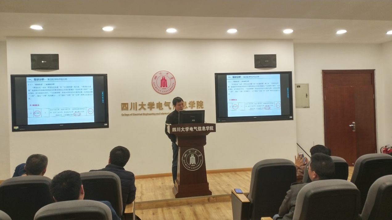 2019年3月1日下午,四川大学控制科学与工程学科发展战略研究第一次会议在基础教学楼B206会议室胜利召开。参加会议的有:电气信息学院院长肖先勇教授、院教授委员会副主席刘凯教授、自动化系党支部书记李成鑫副教授、自动化系主任佃松宜教授、通信工程系党支部书记刘念副教授、通信工程系主任钟俊副教授、医学信息工程系党支部书记杨刚副教授、医学信息工程系主任张劲副教授,以及来自全院各系中心从事控制科学与工程学科研究的老师共50多人。