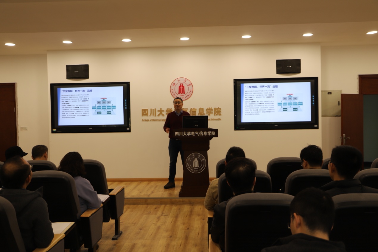 受学院委托,周步祥教授在交流会上做了“泛在电力物联网”的主题报告,主要介绍了“三型两网、世界一流”战略、泛在电力物联网的概念和主要特征、国网建设大纲、对于泛在电力物联网的思考、学院已有的工作基础、未来开展工作的思路等五个方面的内容。他动员与会教师结合自己的科研方向,共同推进泛在电力物联网技术创新发展。