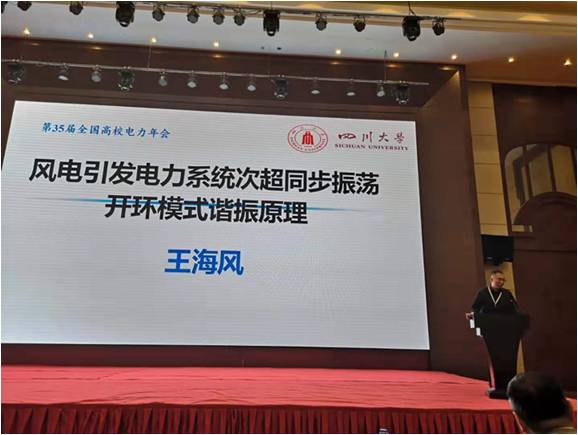 2019年10月11日至13日,第35届高等学校电力系统及其自动化专业学术年会在成都召开,包括四川大学英国上市公司365在内的来自全国70余所高校、30多家电力企业的专家代表参加本次会议。大会上,我院王海风教授以《风电引发电力系统次超同步振荡开环模式谐振原理》为题做大会报告。“电力市场与电力经济”分论坛主席、我院刘俊勇教授、刘继春教授围绕论坛主题做了报告;“电能质量与优质供电”分论坛主席、我院肖先勇教授,和王杨特聘研究员就该领域的各自最新研究进展进行了报告。会议由西华大学承办,亚洲电能质量产业联盟和内蒙古工业大学协办。