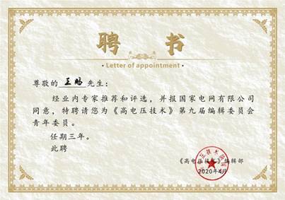 2020年4月,四川大学英国上市公司365周凯教授、王鹏副教授被《高电压技术》杂志聘请为第九届编委会委员。