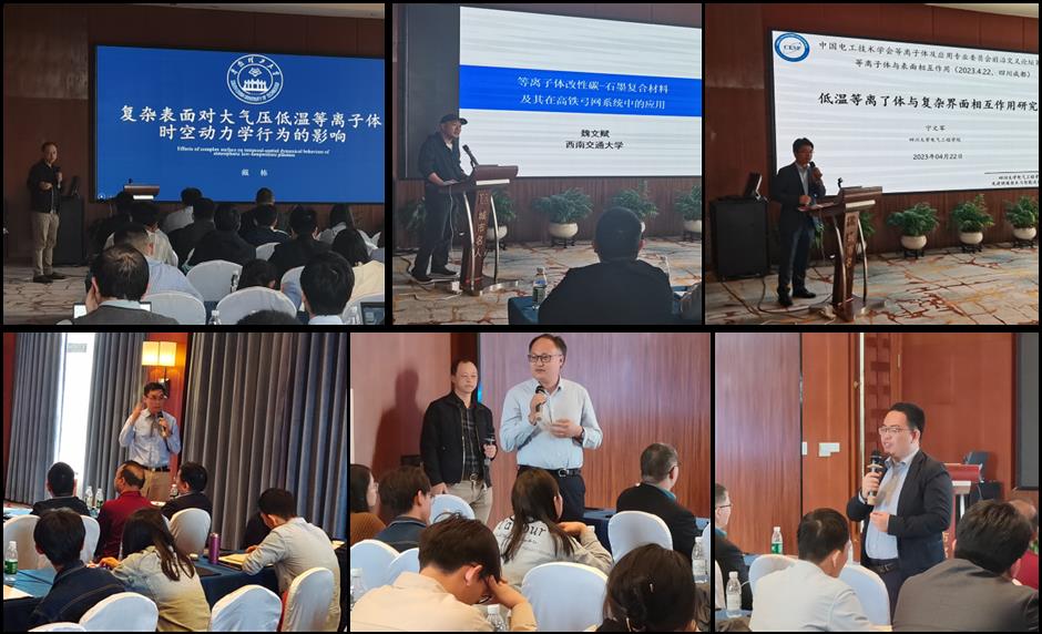 论坛围绕放电等离子体在高压输电、材料处理、能源化工等应用方向的机理探讨,聚焦等离子体与表面相互作用这一关键科学问题,邀请了西南交通大学高国强教授、华南理工大学戴栋教授、西南交通大学魏文赋副教授、南京工业大学梅丹华副教授、湖南大学陈赦副教授、四川大学宁文军副研究员、西安交通大学李元副教授、武汉大学王羽副教授、中国科学院电工研究所窦立广副研究员等专家学者,分别针对“高速铁路弓网受流技术”、“复杂表面对大气压低温等离子体时空动力学行为的影响”、“等离子体改性碳石墨复合材料”、“低温等离子体协同催化能源环境应用研究”、“气体侧放电下固体绝缘表面积聚电荷类型研究”、“低温等离子体与复杂界面相互作用研究”、“气液两相脉冲放电的界面效应及其制备碳量子点的应用探索”、“旋转风机雷击接闪机理及接闪失效机制研究”、“等离子体-界面协同活化C1分子利用及反应机制研究”等主题进行了报告。每一个主题报告结束后,都穿插了专业问答环节,会场的气氛非常活跃。