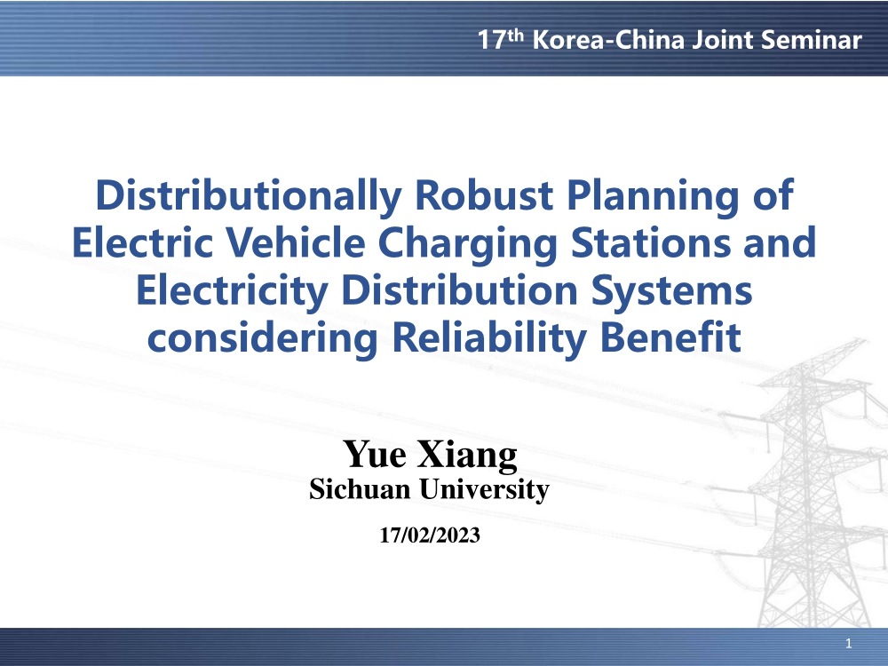 在2023年第十七届中韩电力系统保护与自动化技术论坛上,学院副教授向月作了题为“适应电动汽车广泛接入的充电基础设施与配电系统分布式鲁棒协同规划”的报告,经本人授权,与大家分享。
