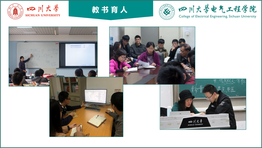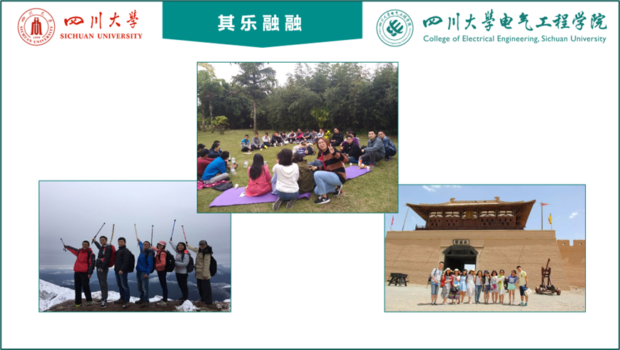 团队五育融合,立德树人。把健康人格和高尚品德放在首位,营造有社会责任感、理想信念和探索精神的团队氛围,荣获四川大学第四届“德沃群芳”育人文化建设标兵团队;秉持以生为本教育理念,崇尚科学,追求真理,培养学生独立思考、发现和解决问题的能力、科学探索与创新精神;通过联合培养、参加国际国内会议等多种方式,开阔学生眼界、提升研究能力、团队协作能力和组织能力;重视学生德智体美劳全面发展,通过丰富多彩的文化体育活动、社会公益活动等,构筑和谐、宽容、向上的成才环境。团队源源不断地为国家培养输送高素质人才,毕业生就业率100%,分布全国31个省市自治区,在电力、石油、水利等能源行业,高校教育,航空、交通等行业关键领域关键岗位发挥着重要作用,展示着自己的青春和才华。