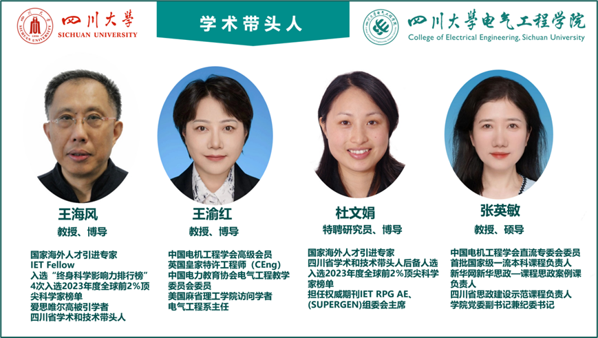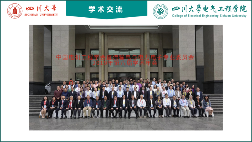 四川大学电力系统稳定与高压直流输电团队,是我国最早从事直流输电相关研究的团队之一,创始人为李兴源教授,现任负责人为博士生导师刘天琪教授*,成员包括王海风教授*、王渝红教授*、杜文娟教授*、张英敏教授*、莫思特*、曾琦*、王顺亮*、何川*、马俊鹏*、李保宏*、印月*、南璐*、彭乔*、郑宗生*、廖建权*、高仕林*、江琴*、冷敏瑞、焦宁。团队有教授5人,副教授/副研究员12人,讲师/助理研究员3人,博导6人,硕导12人。此外,团队拥有汤广福(中国工程院院士)、吴磊(Stevens Institute of Technology 副教授)、贺之渊等高端学术顾问和外聘博导。
