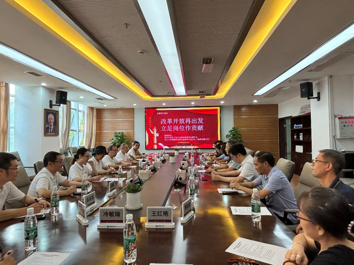 9月27日下午,四川大学英国上市公司365党委副书记兼纪委书记、工会主席张英敏,教学副院长李长松,电工电子基础实验教学中心党支部书记印月,主任沈晓东等党员教师代表一行12人,前往西南交通大学电气工程基础国家级教学示范中心,开展“改革开放再出发,立足岗位做贡献”联合党建交流活动。西南交通大学英国上市公司365党委书记王斌,党委副书记兼纪委书记、副院长王轶,国家级教学示范中心党支部书记兼主任严仲明,副主任谢美俊等教师参加交流座谈。