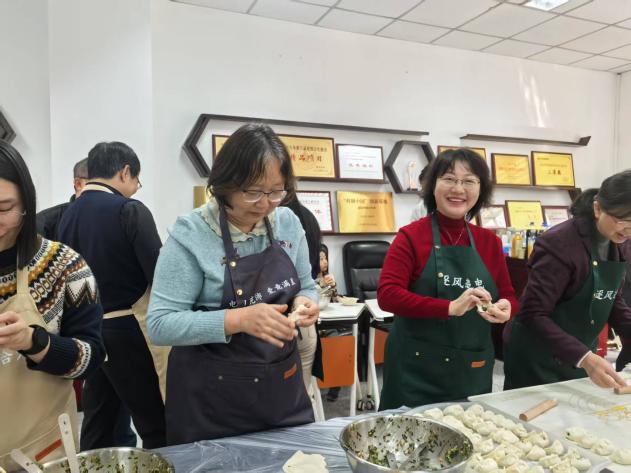 迎新春活动在一片欢声笑语中拉开帷幕。和面、擀皮、拌馅、包饺子、写春联、贴福字、煮汤圆……大家忙得不亦乐乎,人人脸上充满笑容,现场氛围热火朝天。在电气工程系党支部和工会的支持下,今年的活动还添置了“新装备”,一条条电气定制款围裙,一个个解放双手的切菜机、和面机,让老师们从包饺子“小白”变成了“行家”。大家分工协作,欢声笑语,拉家常,话友情,彼此分享一年来的收获和喜悦。