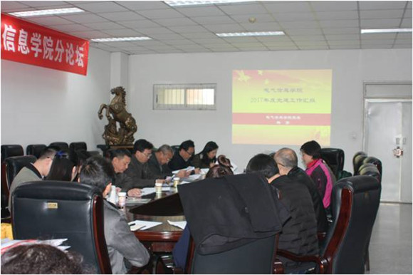 2017年12月27日下午3点,学校基层党建考核第五工作组对我院2017年党建工作进行现场考核。会议在基础教学楼A座220学院会议室举行。学院党委书记韩芳同志、党委委员、院长肖先勇教授、党委副书记、纪委书记张英敏同志等院领导、两委委员、教工党支部书记、学生党支部书记代表、教师党员代表、学生党员代表共25人参加了会议。会议由党委书记韩芳主持。