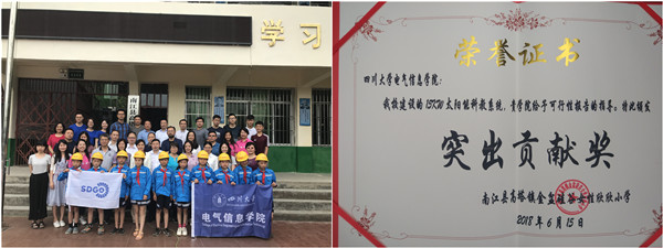 2018年6月15日,由四川大学电气信息学院、中国社会工作联合会、IEEE PES成都专委会、美国硅谷女性协会、上海临港弘博新能源发展有限公司等捐赠的15千瓦屋顶光伏系统暨并网发电仪式在四川省巴中市南江县金盆小学隆重举行,各捐赠方代表参加了启动仪式。