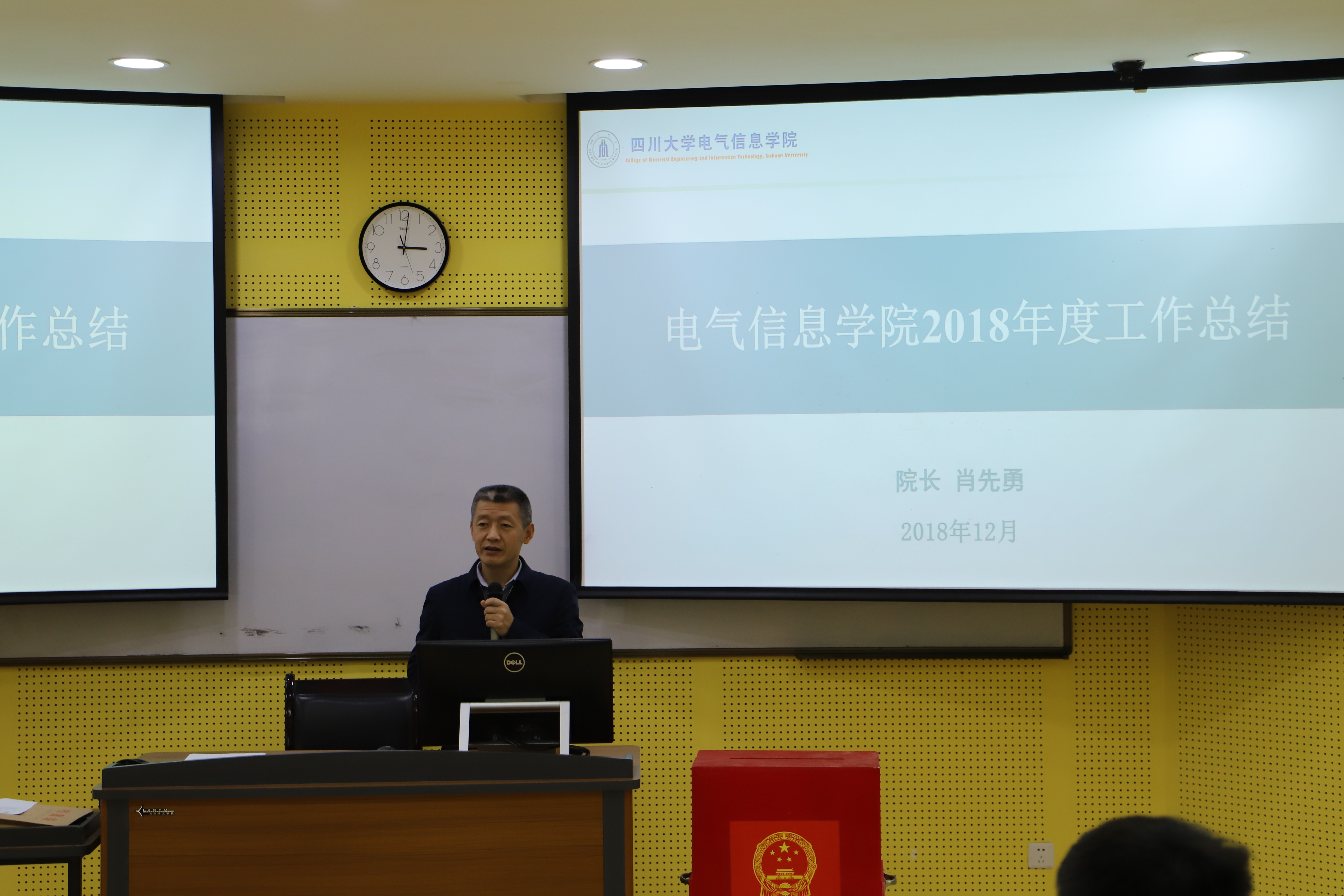 12月14日下午,电气信息学院领导班子和领导人员年度述职和岗位测评会在望江校区研究生楼一区104(水上报告厅)举行。学院领导班子成员、全体在职教职工和部分离退休代表参加了会议。会议由学院党委副书记戴婷婷主持。
