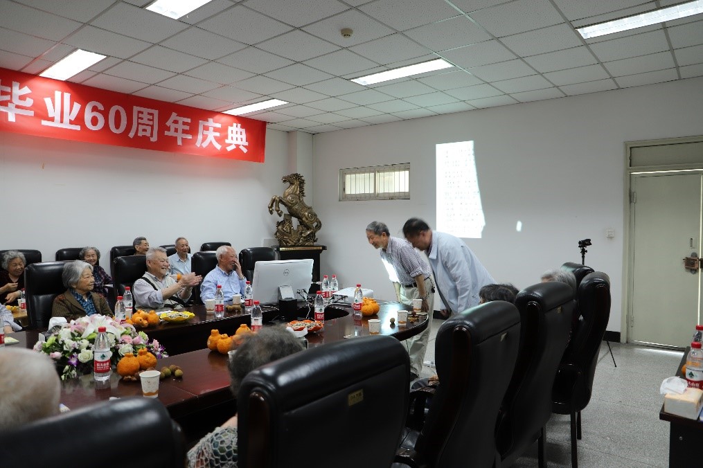 六十年前,同学们风华正茂、青春激昂;六十年后,大家皓首再聚、共叙同窗情母校情。参与此次庆典的校友们,即便是最年轻的,也已有80岁高龄,而最年长的,已有93岁。耄耋之年的校友们见到昔日同窗,感慨万千,亲切热络地交谈着,亲密的同窗情谊一如往昔。