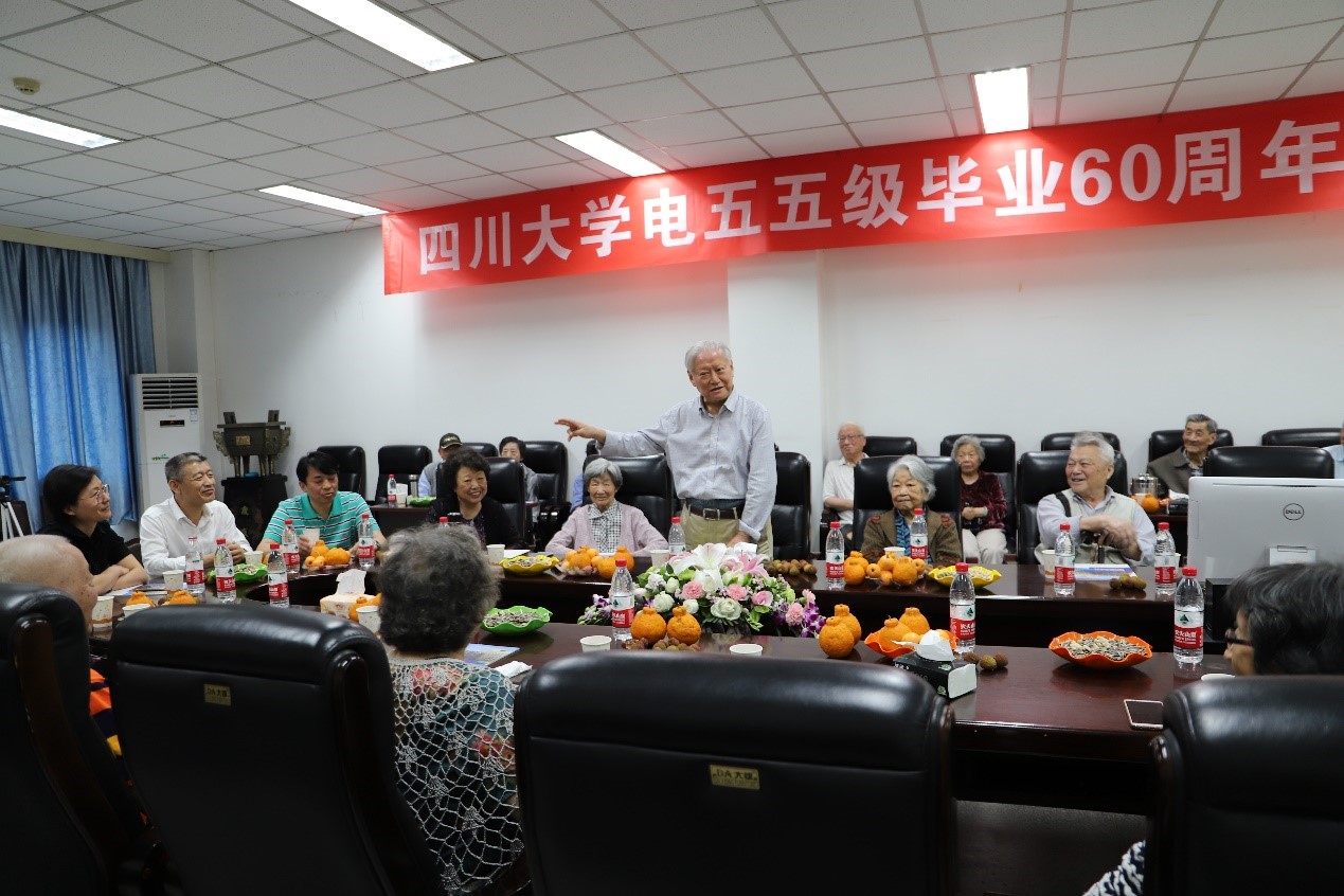 2019年5月23日,四川大学(原成都工学院)电55级毕业六十周年庆典于四川大学望江校区基础教学楼220会议室成功举行。参加此次庆典活动的有韩帮彦、张道泉、刘东珍、张述芳等学院老教师代表,还有尹可华、钟岷秀、王贵德等20多位电55级老校友代表。四川大学对外联络办公室主任荣建国,英国上市公司365党委书记韩芳、院长肖先勇、副书记张英敏、戴婷婷、副院长李长松等参加了此次庆典。
