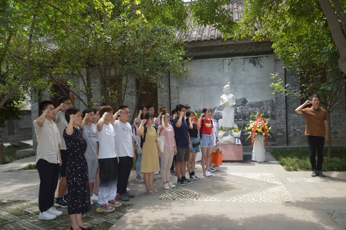 活动伊始,韩芳书记代表学院党委对各位新发展党员表示祝贺,希望他们牢记入党誓词,始终不忘初心,时刻以一名党员的标准严格要求自己,在各方面发挥先锋模范带头作用。之后,在胡劼老师的领誓下,全体新发展党员同学进行了入党宣誓。随后,伴着讲解员的解说,同学们回顾了革命烈士江竹筠的一生。纪念馆根据江姐的生平经历设计展区,还原江姐当年的生活场景,展示了江姐在四川大学学习期间作为进步学生开展革命活动的一系列事迹。整个参观过程让同学们感受到了江姐为革命事业毅然前行、顽强战斗的精神,同时对江姐追求真理、恪守信仰、舍生取义的大无畏精神表示敬佩和感动。